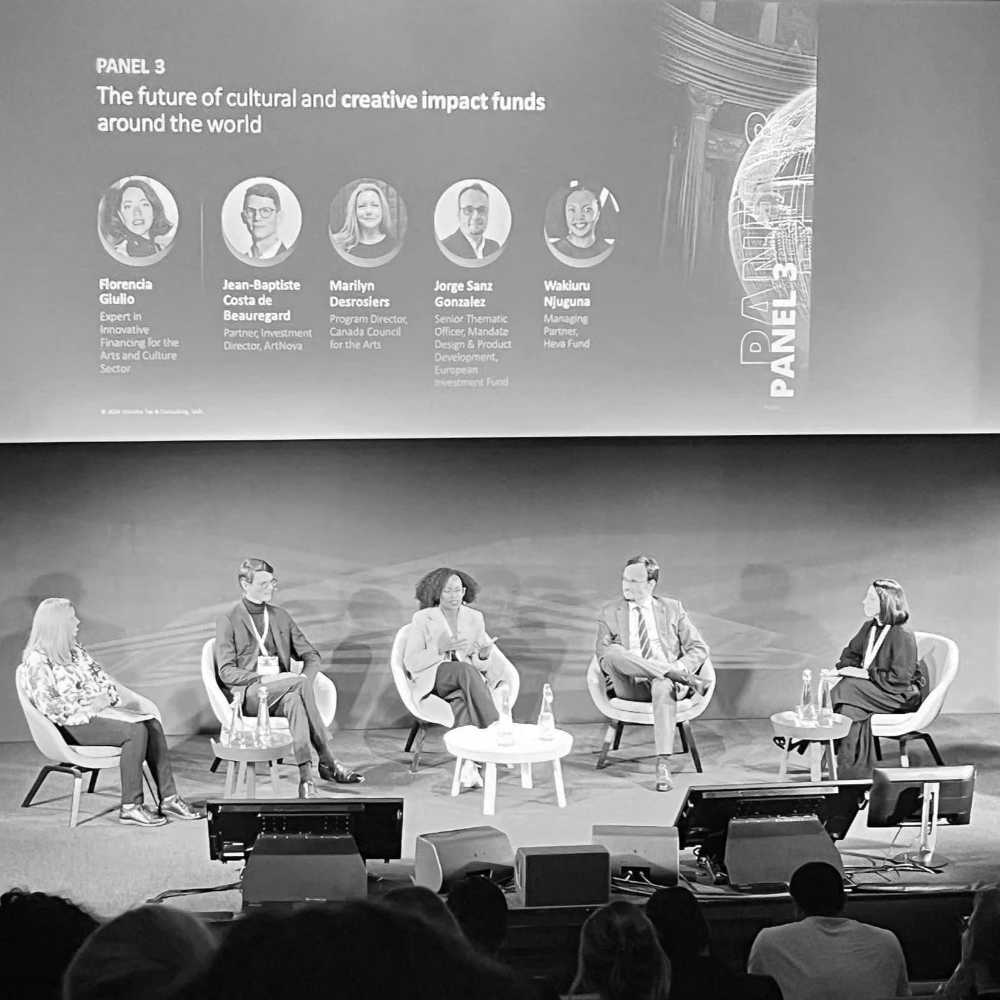 Panel Discussion: 'The future of cultural and creative impact funds around the world' at the 16th Deloitte Art & Finance Conference. Keynote (5’): 'Key findings from the roundtable discussion: Making the Arts Investable' by Agustina O’Farrell Molina, Creative Economy and Impact Investing Specialist. Panelists: Jean-Baptiste Costa de Beauregard, Partner, Investment Director, ArtNova; Marilyn Desrosiers, Program Director, Canada Council for the Arts; Jorge Sanz Gonzalez, Senior Thematic Officer, Mandate Design & Product Development, European Investment Fund; Wakiuru Njuguna, Managing Partner, Heva Fund; Moderator: Florencia Giulio, Expert in Innovative Financing for the Arts and Culture Sector.